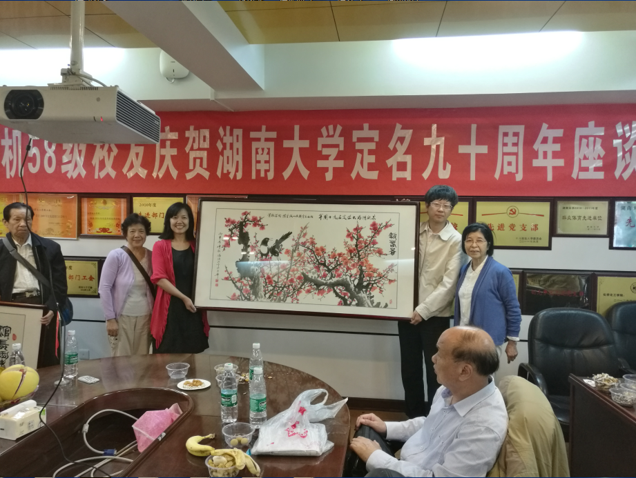 会后,校友代表向学院敬献冯洵武校友专门为纪念成人漫画
