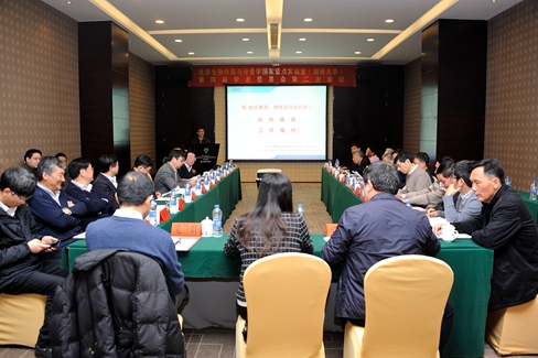 合 影 孙炜院长主持会议开幕式,刘金水副校长代表学校致欢迎辞。学术委员会会议由国家重点实验室学术委员会副主任唐本忠院士主持。实验室主任谭蔚泓教授就2016年实验室的基本情况、队伍建设、科学研究、对外开放与交流、发展思路等向委员们作了全面总结汇报,同时,提出了实验室2017年年度发展规划,提请学术委员会讨论并获得通过。袁林、陈卓、羊小海、吴海龙四位教授向委员们汇报了一年来各方向的研究热点。