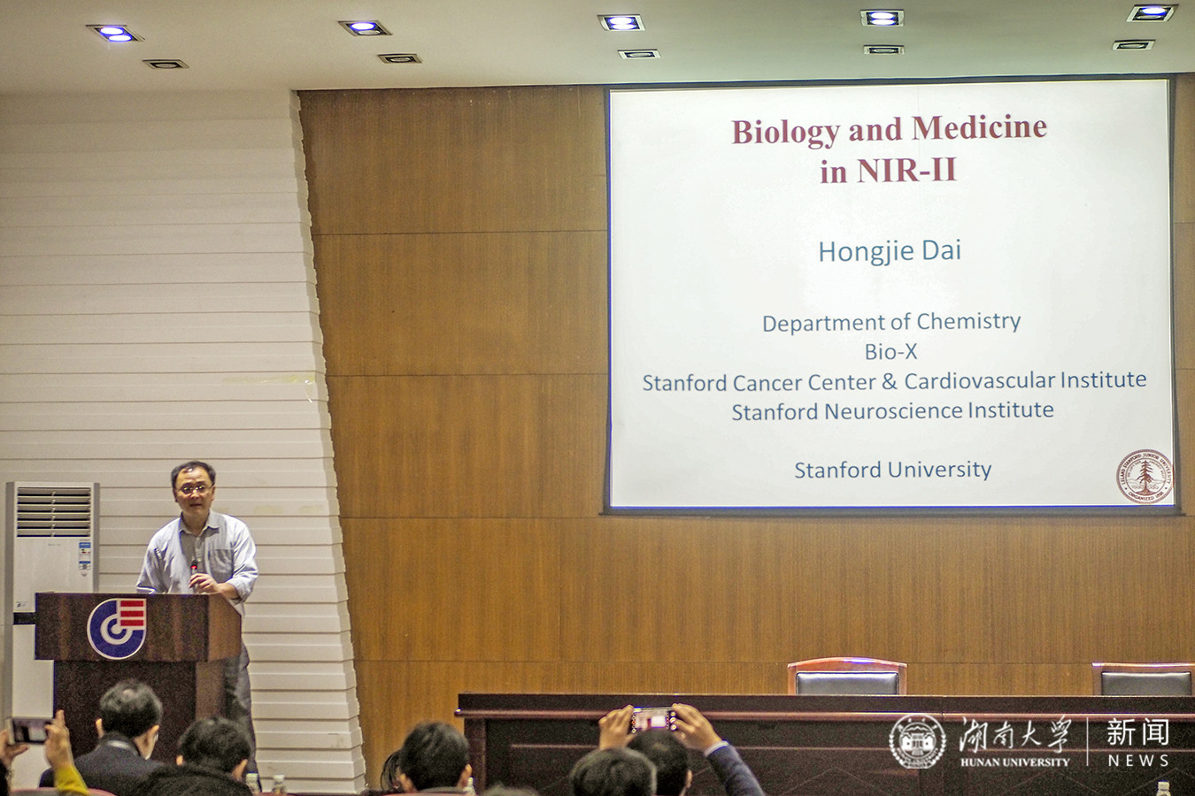 戴宏杰院士介绍了他在碳纳米材料领域的近红外Ⅱ区荧光成像研究,并且通过改进现有的成像仪器,搭建新型的小动物成像仪,使近红外Ⅱ区成像更好的用于活体水平。