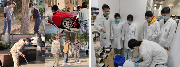 为了营造良好的学习生活环境,切实将科研学习与社会劳动结合,维护校园优美环境,物化01党支部围绕曾宪梓楼展开系列活动:其一,“我是环境护卫者”——对曾宪梓楼周边卫生进行清理;其二,“我是安全小卫士”——认真学习实验室相关安全事宜;其三,“我是粮食守护者”——参与粮食光盘打卡。