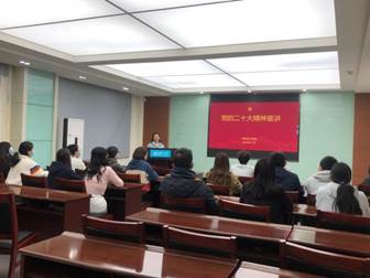 分析02党支部组织召开“学习二十大,奋勇新征程”主题党日活动,邀请学院党委副书记、纪委书记楚霞老师作党的二十大精神专题宣讲,解读党的二十大会议精神,传递党的二十大声音,支部全体党员参加。