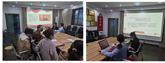之后,分析01党支部谢萍同志以“筚路蓝缕一百年,建功立业新时代”为主题进行了党课的讲授。她先带领大家回顾了十年来对党和人民事业具有重大现实意义和深远历史意义的三件大事:一是迎来中国共产党成立一百周年;二是中国特色社会主义进入新时代;三是完成脱贫攻坚、全面建设小康社会的历史任务,实现第一个百年奋斗目标。又向大家介绍了脱贫攻坚模范代表:35年坚守太行山的“新愚公”李保国、扎根边疆教育一线40余年,献身教育扶贫、点燃大山女孩希望的张桂梅等。最后她提到:“在全面建设社会主义现代化国家新征程上,只要我们坚持和发展马克思主义,不断赋予马克思主义以新的时代内涵,中国共产党就一定越来越‘能’,中国特色社会主义就一定越来越‘好’”。