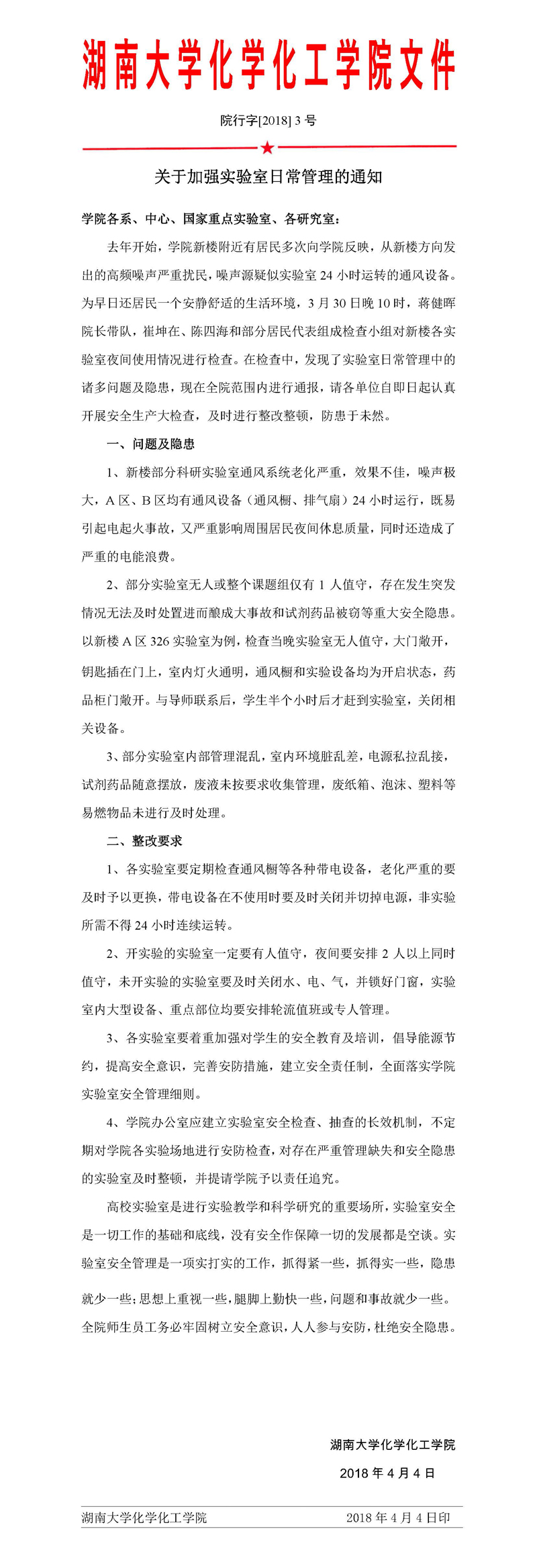 关于加强实验室日常管理的通知