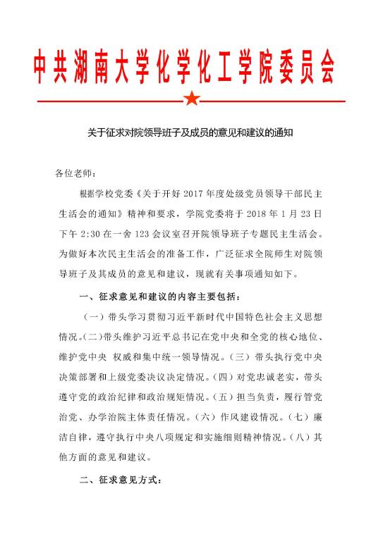 关于征求对院领导班子及成员的意见和建议的通知