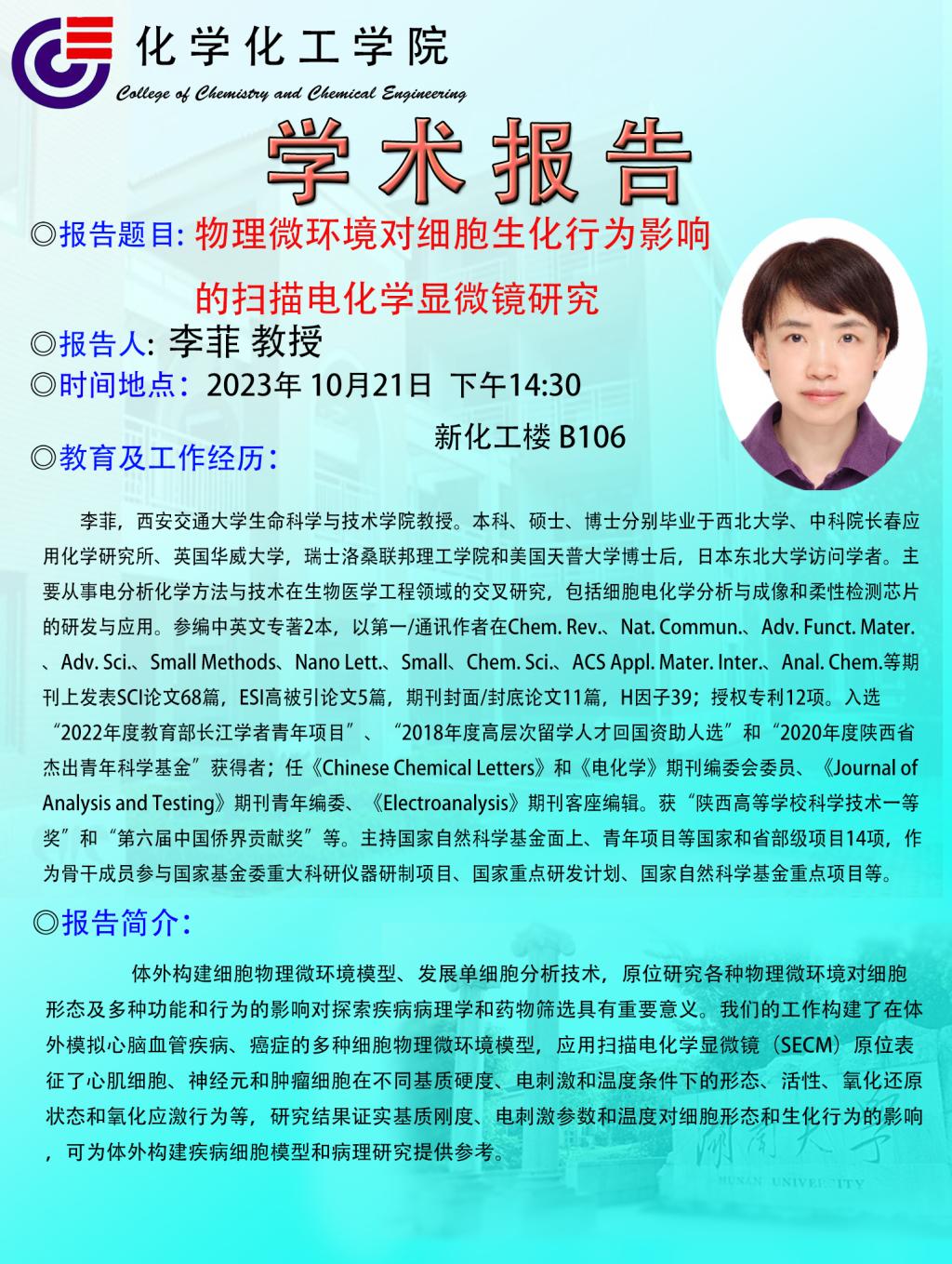 2023年10月21日西安交通大学李菲教授学术报告会