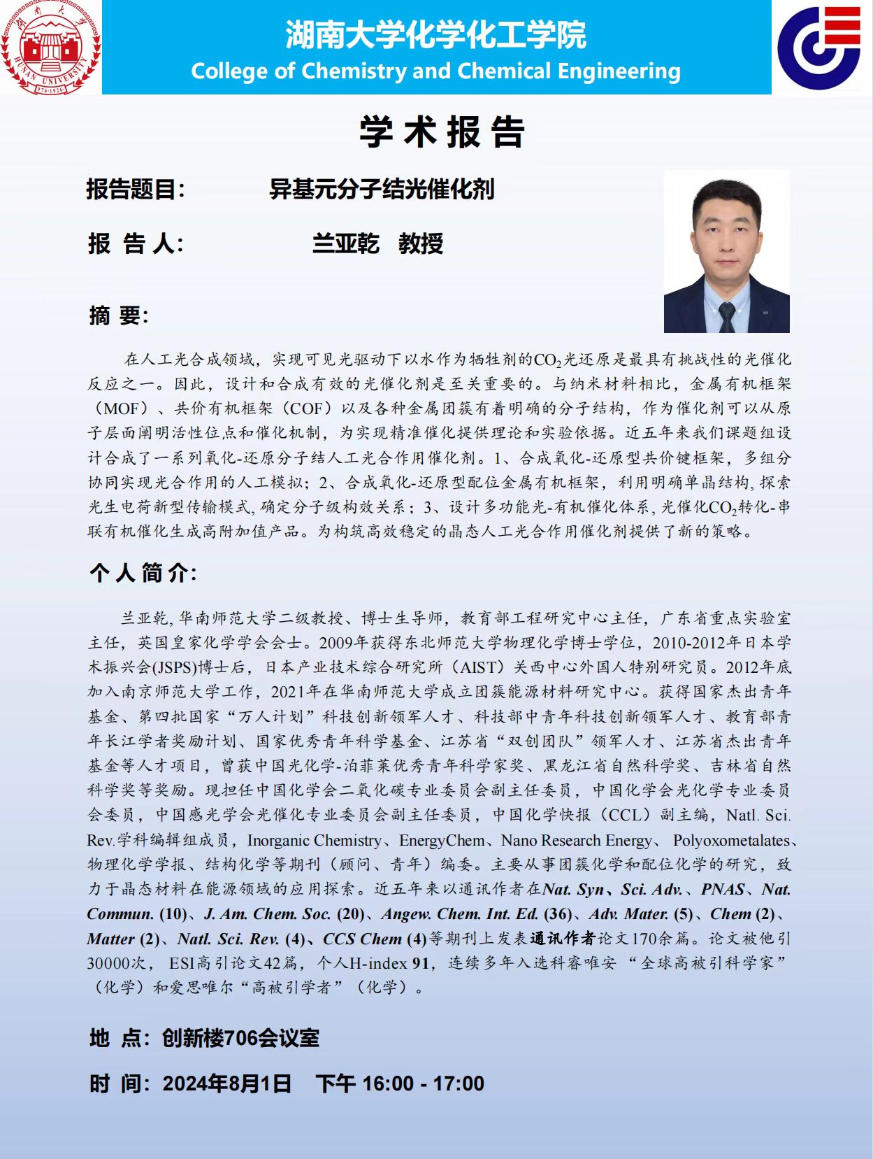2024年8月1日华南师范大学兰亚乾教授学术报告会