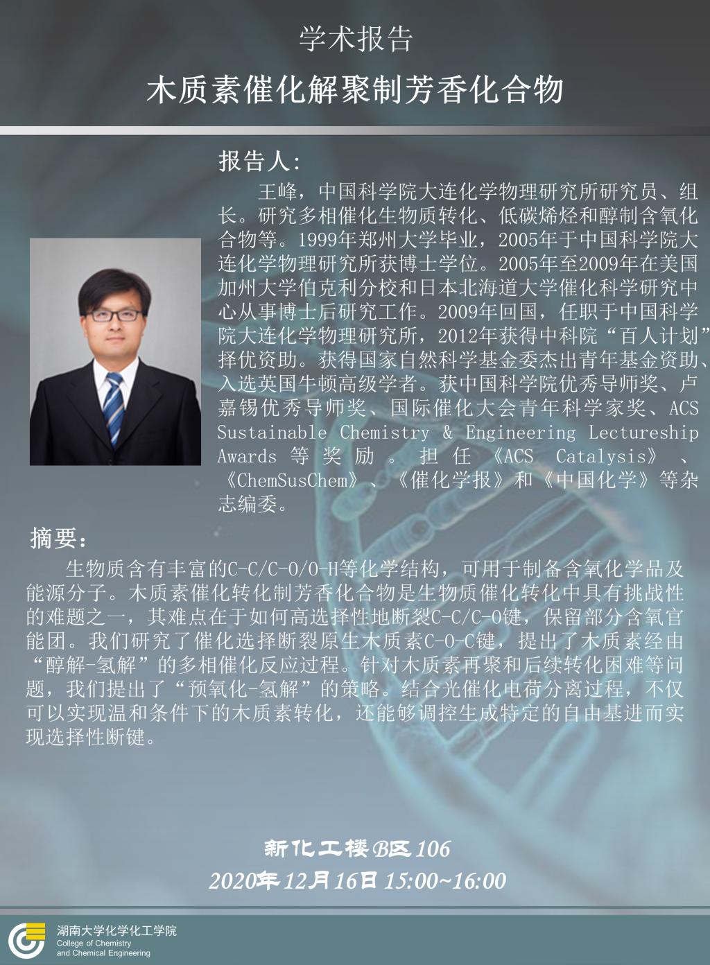 2020年12月16日中国科学院大连化学物理研究所王峰研究员学术报告会