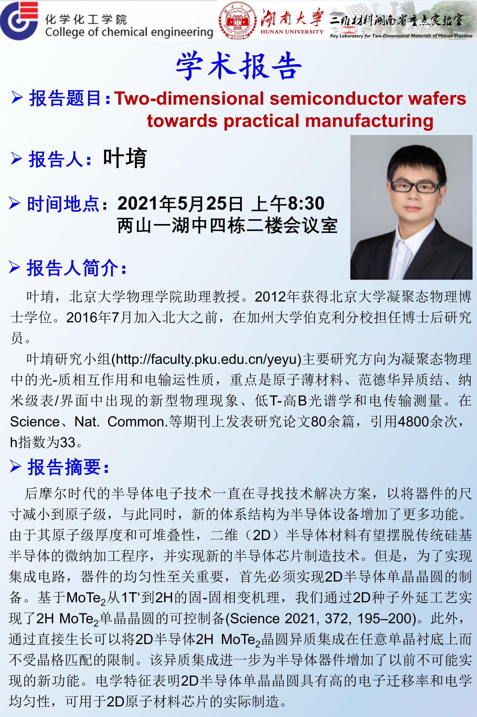 2021年5月25日北京大学叶堉博士学术报告会